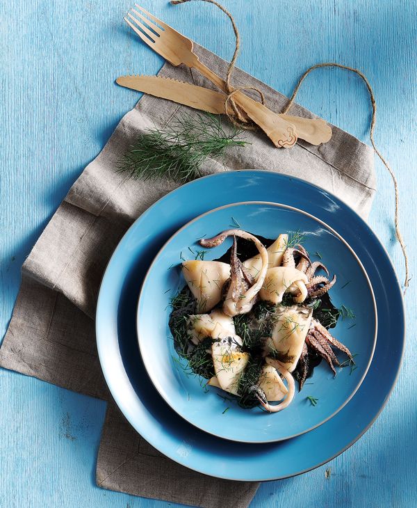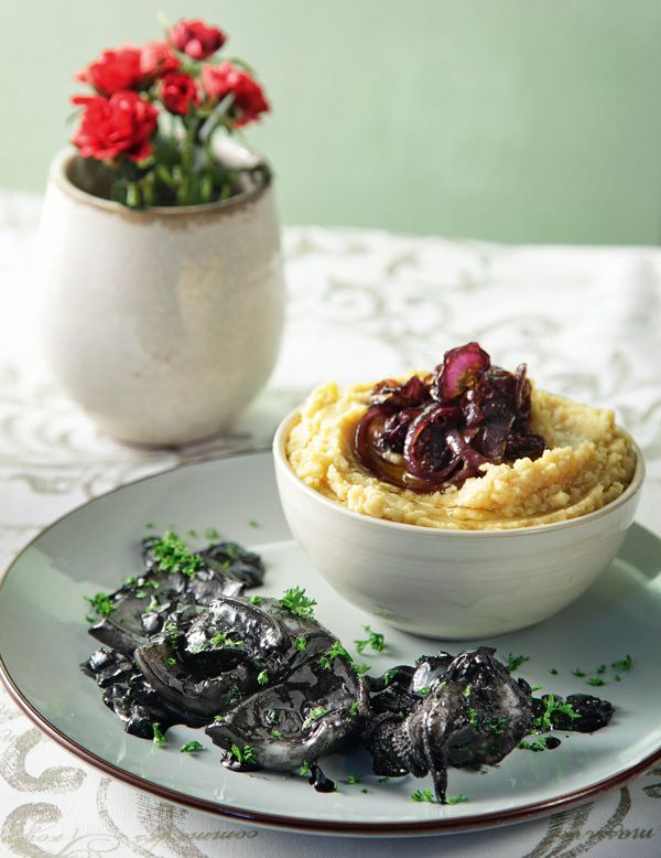 Σουπιές μαγειρεμένες στο μελάνι τους με μάραθο και σκόρδο