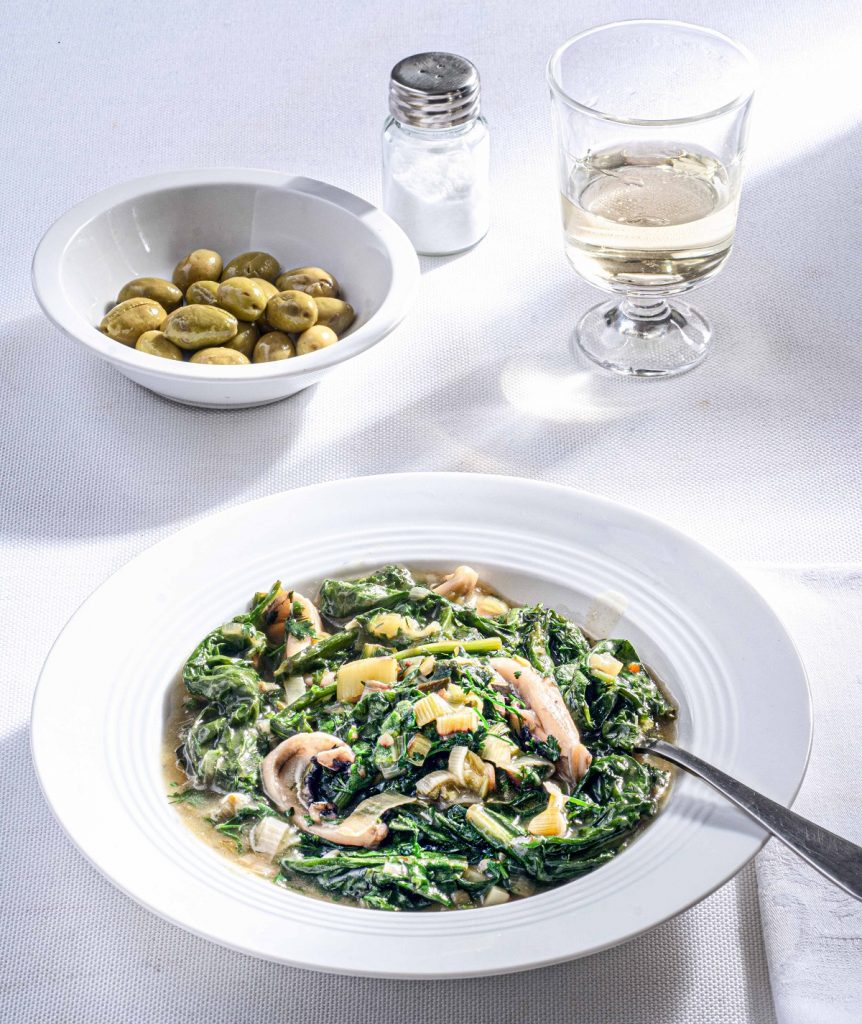 Σουπιές με χόρτα και λευκό κρασί