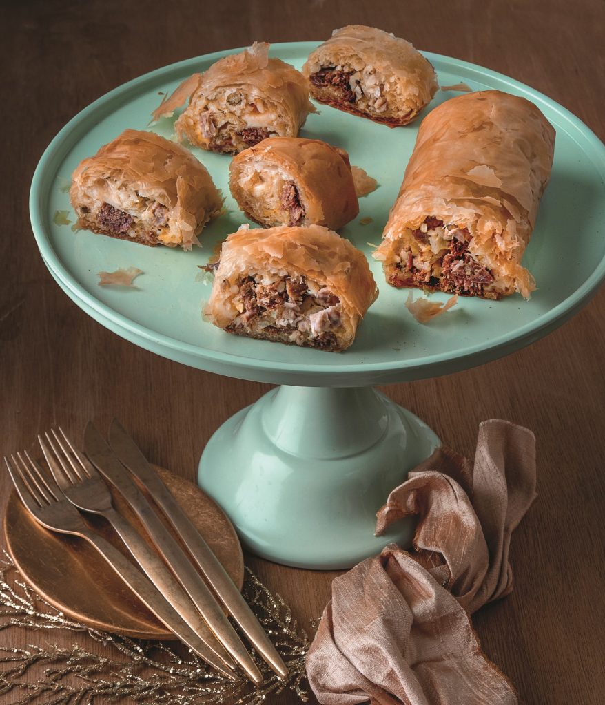 Μια νόστιμη κρεατόπιτα σε τραγανό ρολό γεμιστό με μοσχάρι, χοιρινό και αρνάκι τρώγεται ευχάριστα από όλους σε οποιοδήποτε γεύμα. Μπορείτε να την σερβίρετε ως πρώτο πιάτο σε ένα κάλεσμα αλλά και στο καθημερινό τραπέζι.