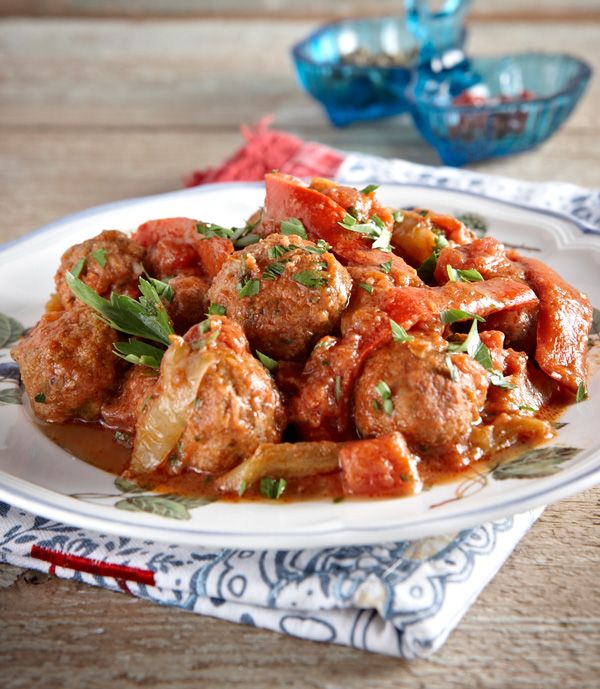 Κεφτέδες με σάλτσα ντομάτας και πιπεριές