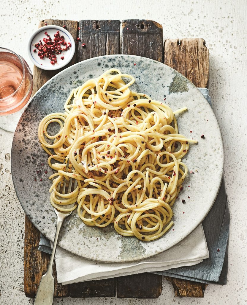 Cacio e pepe rosso (Κάτσιο ε πέπε με ροζ πιπέρι)