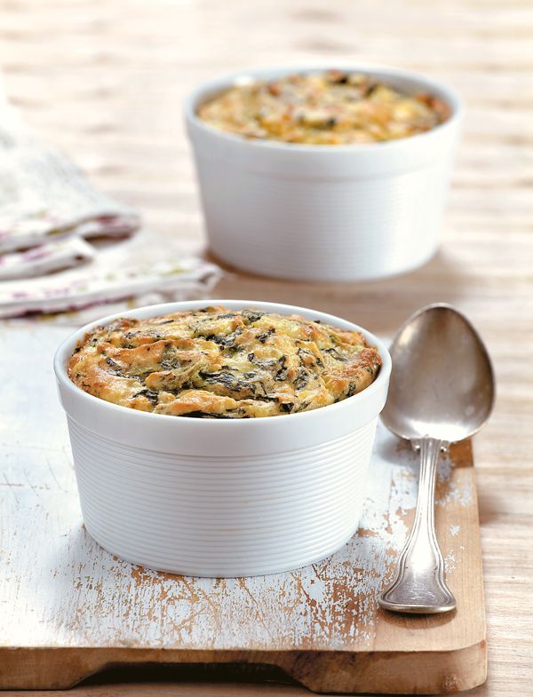 Σουφλεδάκια με σπανάκι φτιαγμένα μέσα στα φορμάκια των μάφινς, που γίνονται εξαιρετικό πρώτο πιάτο σε φιλικά τραπέζια και όχι μόνο.