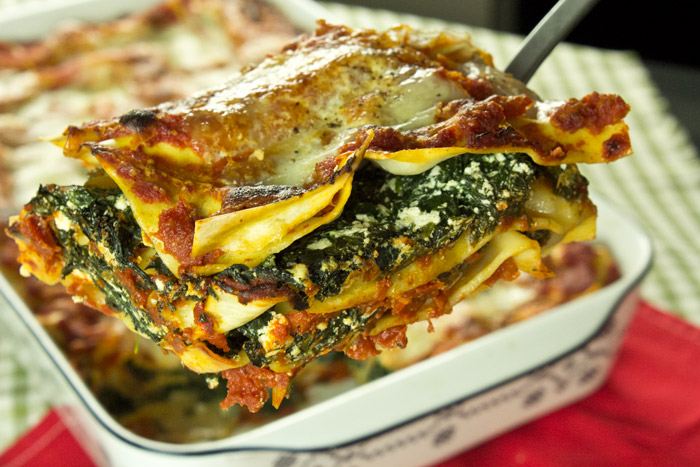 Λαζάνια με σπανάκι και σάλτσα τομάτας