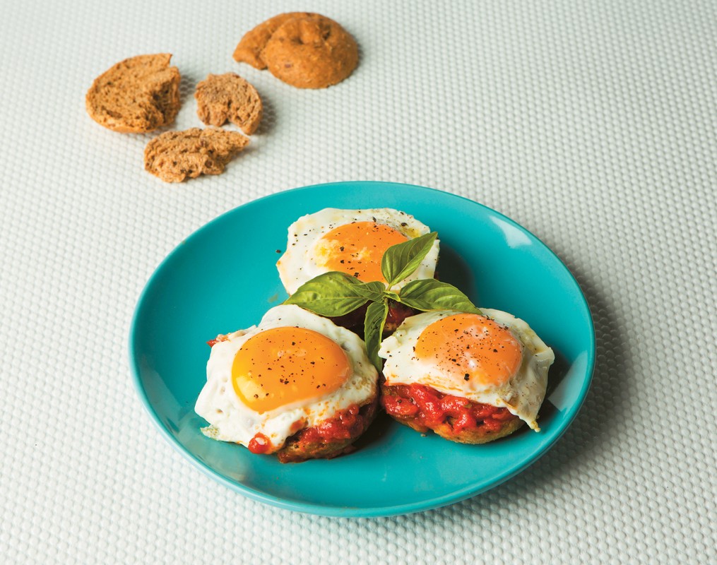 Αυγά μάτια με πικάντικη σάλτσα φούρνου από ντοματίνια