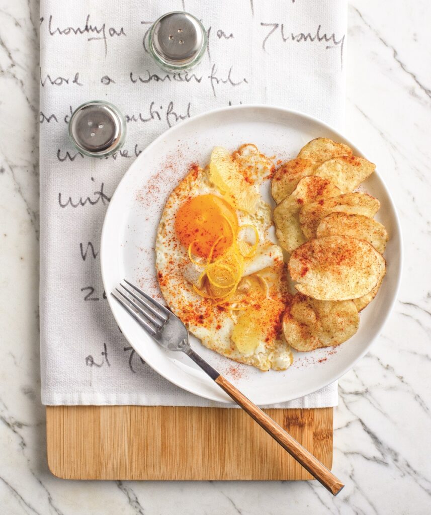Αυγά μάτια με τηγανητές πατάτες: το αγαπημένο comfort food, που λατρεύουν μικροί και μεγάλοι. Εδώ κόβουμε τις πατάτες σε λεπτές λωρίδες για να γίνουν λαχταριστά τραγανά chips.