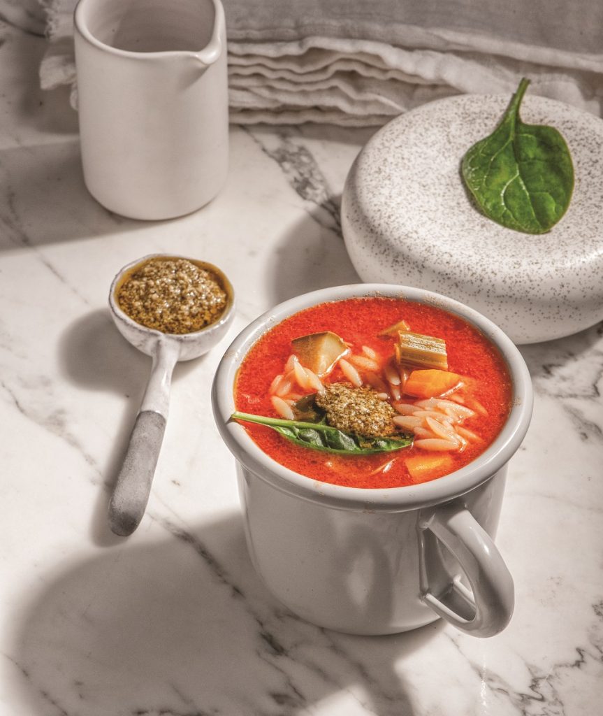 Μινεστρόνε με κριθαράκι, σπανάκι και πέστο
