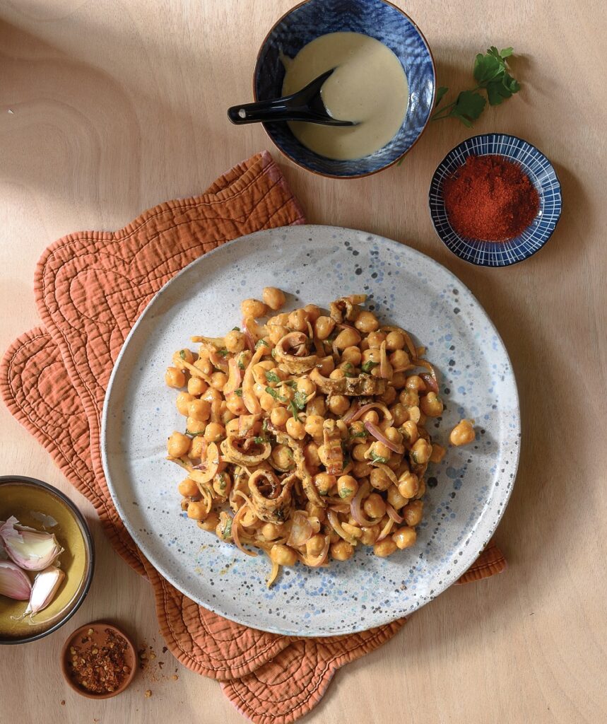 Ρεβίθια σαλάτα µε ταχίνι και πικάντικο θράψαλο