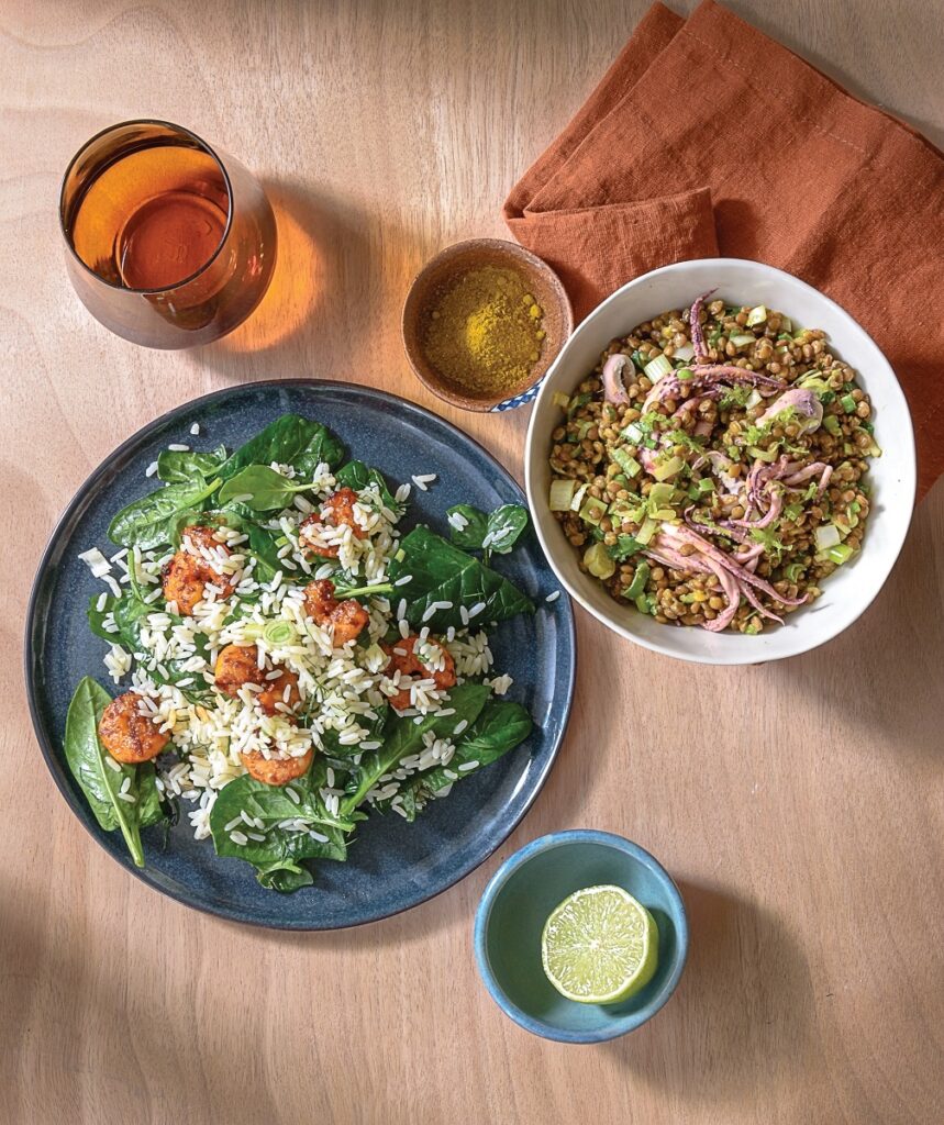 Σαλάτα με ρύζι, σπανάκι και γαρίδες
