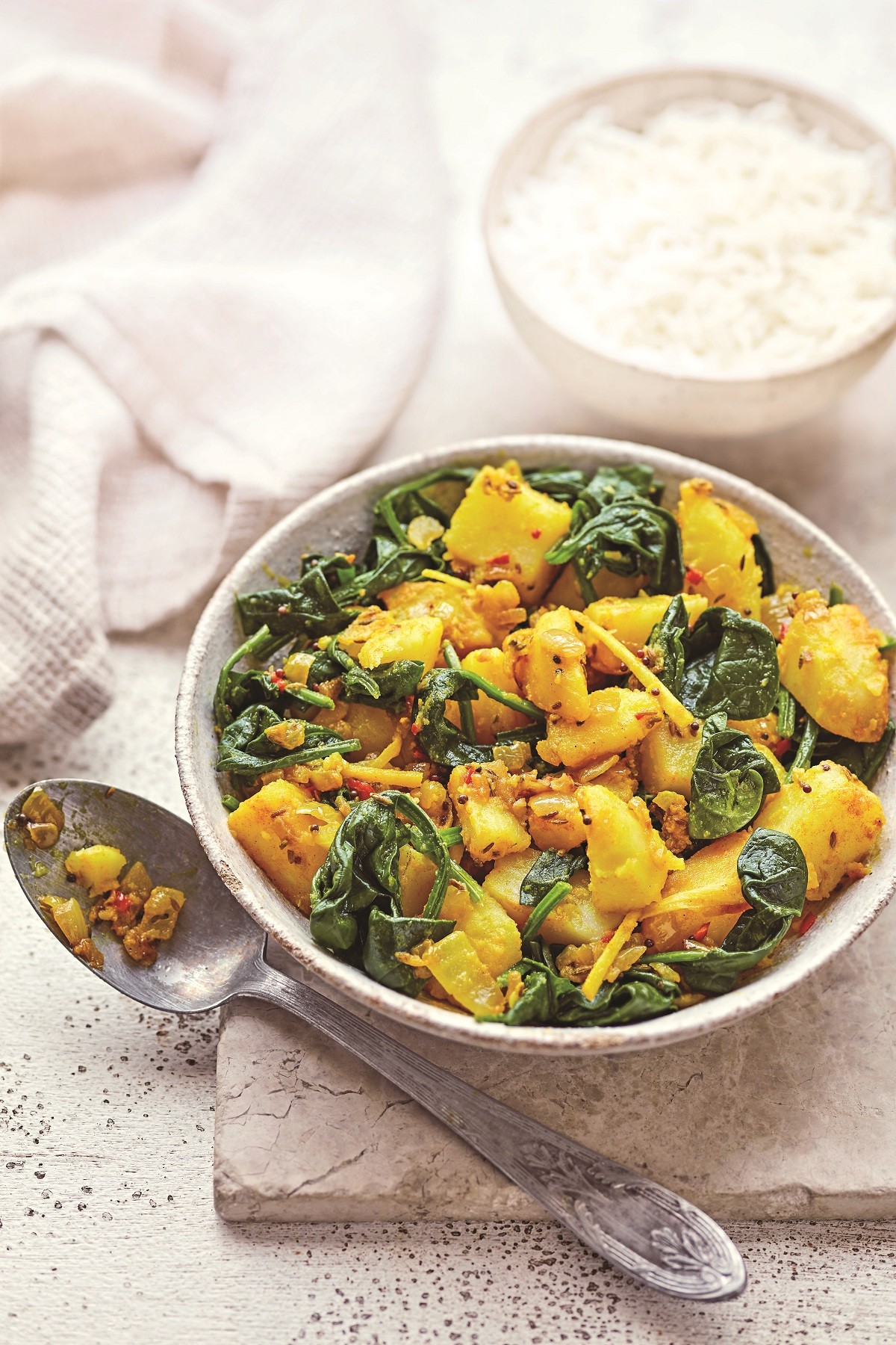 Πατατοσαλάτα με σπανάκι και κουρκουμά