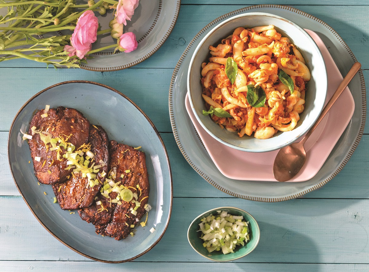 Εκτέλεση: Στη συγκεκριμένη συνταγή είναι βασικό το τηγάνι να είναι σε δυνατή φωτιά και να το έχουμε αφήσει να κάψει. Ανακατεύουμε σε ένα μπολάκι την ντομάτα, τον πελτέ και το μπούκοβο.