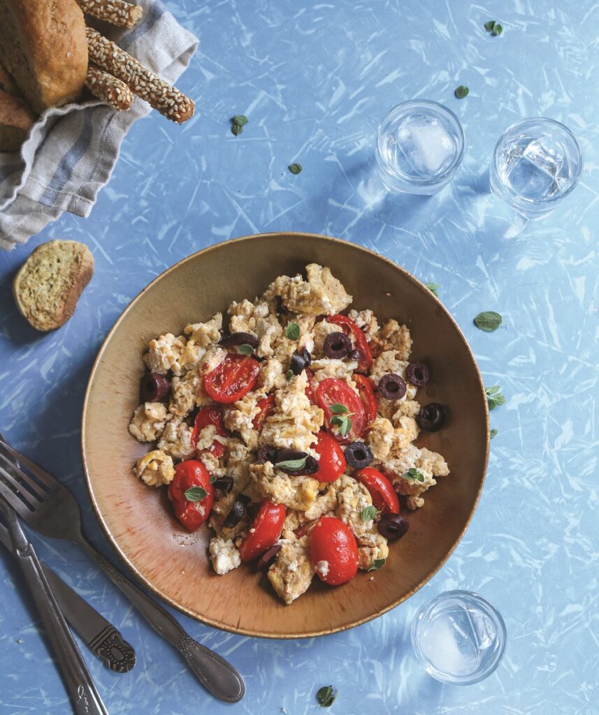 Τα ηπειρώτικα αυγά στην πεντανόστιμη καλοκαιρινή τους εκδοχή με γλυκά ντοματίνια και ελιές. Απολαύστε τα ως ορεκτικό ή μεζέ στη μέση.