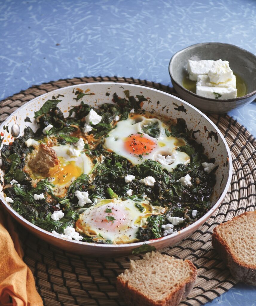 Λίγα χόρτα εποχής μαζί με αυγά συνθέτουν έναν από τους πιο λιτούς αλλά ιδιαίτερα νόστι- μους μεζέδες του καλοκαιριού.