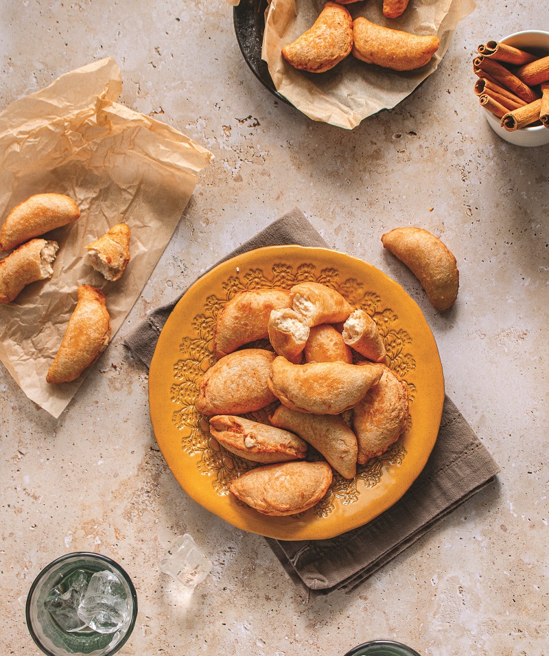 Λευκά, μαλακά τυριά αρωματισμένα με μυρωδικά, κλεισμένα μέσα σε τραγανά μισοφέγγαρα ζύμης.