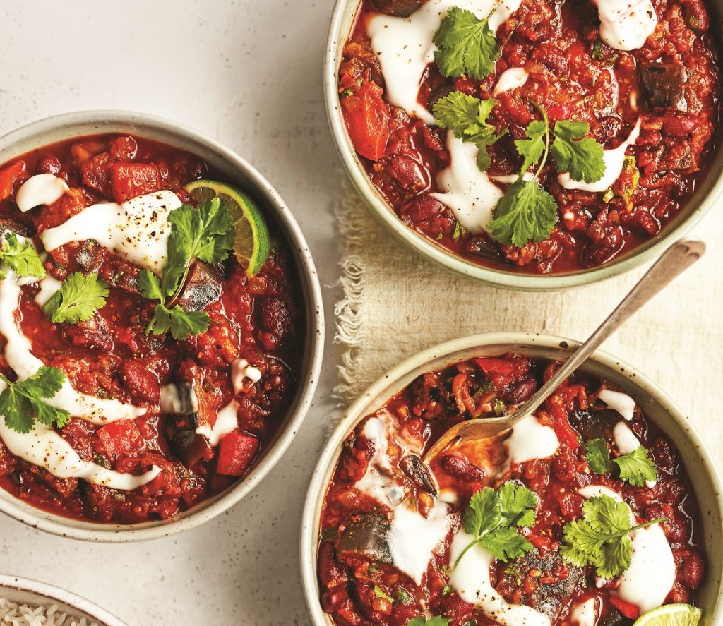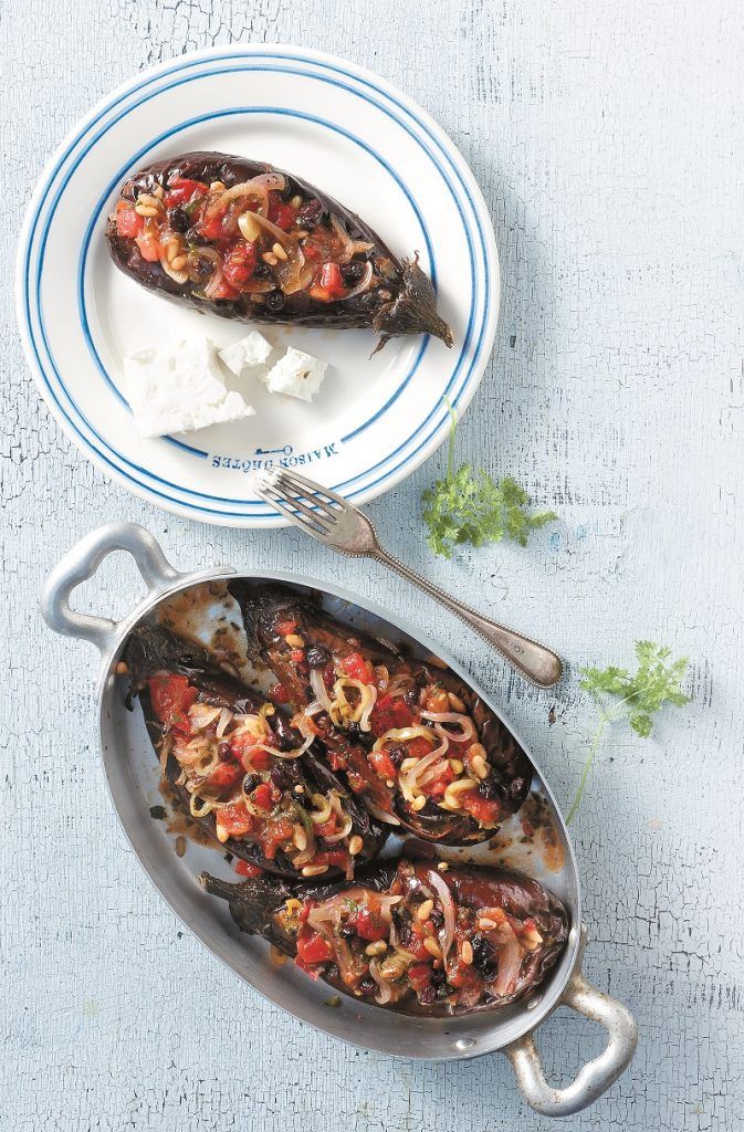 Οι μελιτζάνες της εποχής μαγειρεύονται αργά στην κατσαρόλα με πιπεριές μέχρι να μελώσουν, αρωματίζονται με φύλλα φρέσκου βασιλικού και συνοδεύονται με γιαούρτι και ρύζι basmati.