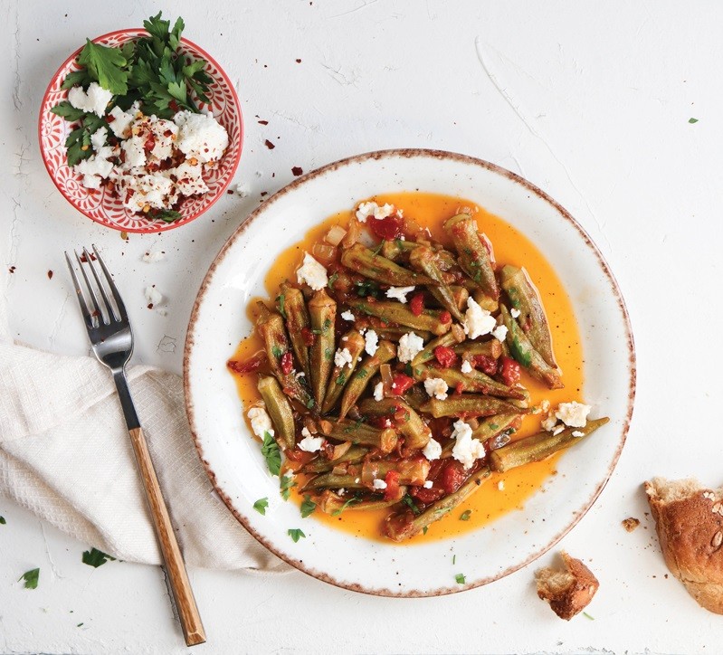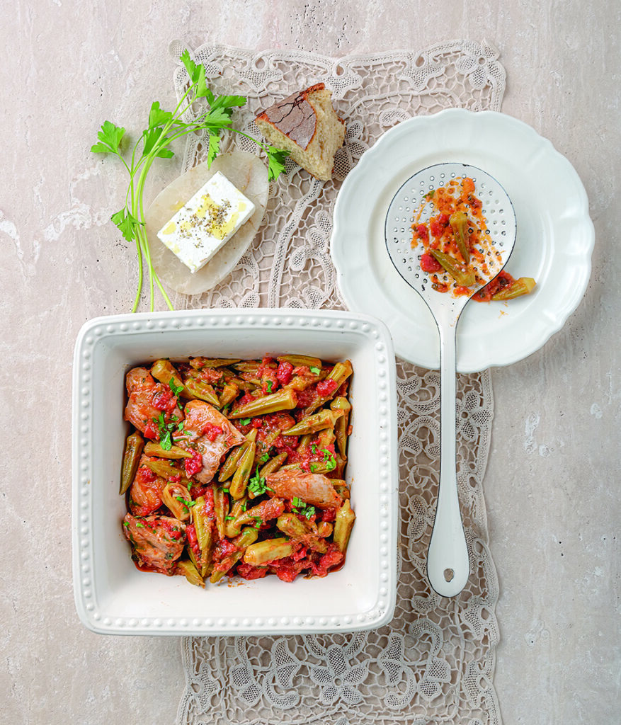 Μια πιο ιδιαίτερη συνταγή, αφού οι μοναδικές λαδερές μπάμιες με τη χαρακτηριστική γλύκα τους μαγειρεύονται με παλαιωμένο βαλσαμικό και φέτα!