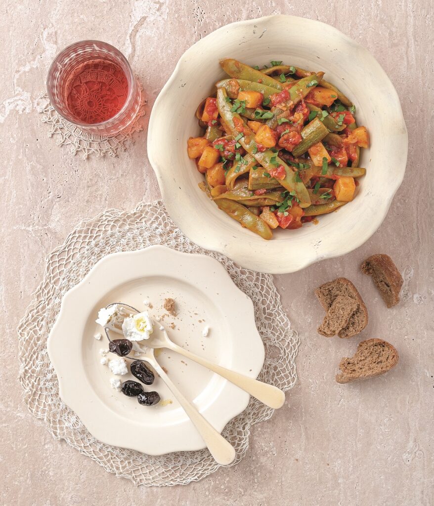 Φασολάκια λαδερά με «πέστο» από πιπεριά Φλωρίνης