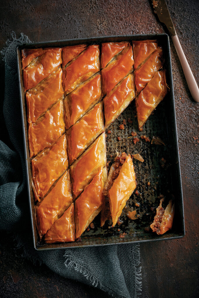 Ο μπακλαβάς με πορτοκάλι, καρύδια και κανελογαρίφαλα δείχνει πώς τα γλυκά της περιοχής διαφοροποιούνται από τα δικά μας. Πιο αρωματικά, λιγότερο «βαριά», με έμφαση στα μπαχαρικά και τα εσπεριδοειδή. Δείτε την πλήρη εκτέλεση της συνταγής εδώ.