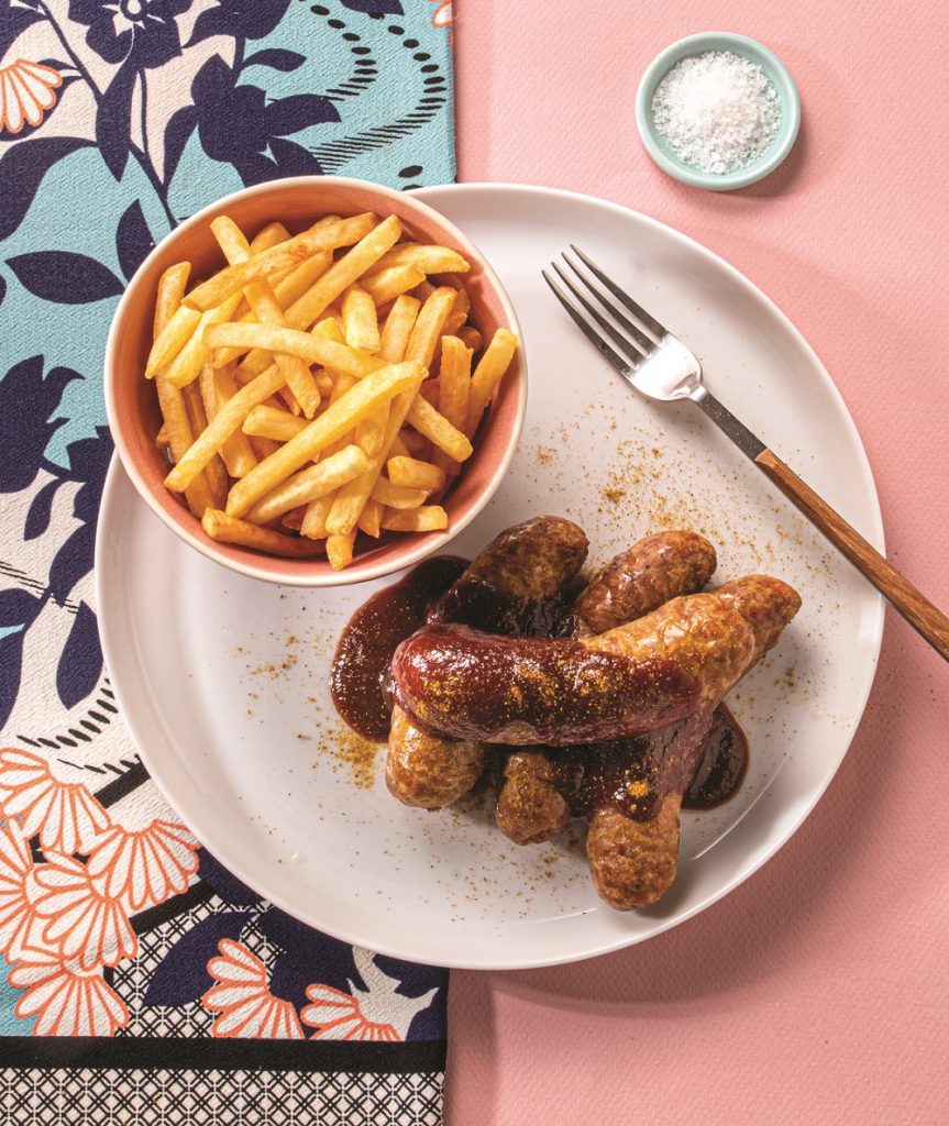 3. Γερμανία. Λουκάνικα με πατάτες και πικάντικη σάλτσα με κάρυ