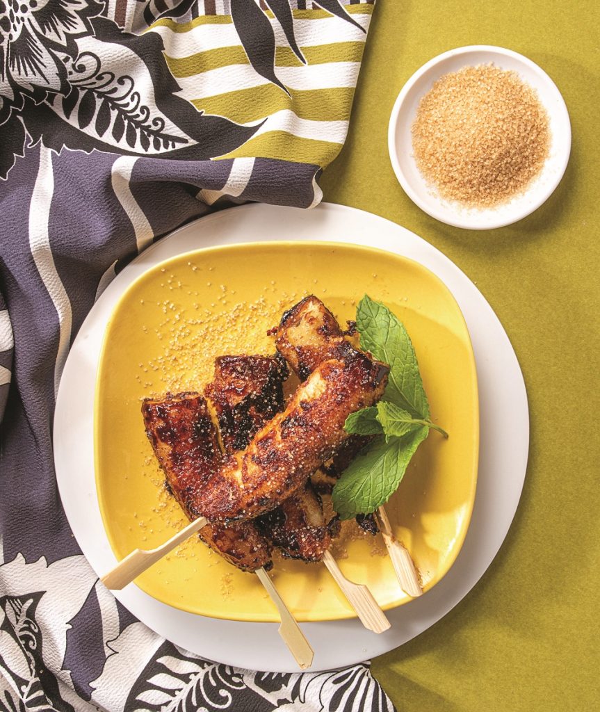 Περνάμε από ένα ξύλινο καλαμάκι για σουβλάκι στην κάθε μπανάνα και σερβίρουμε -αν θέλουμε- πασπαλίζοντας με ζάχαρη άχνη και κανέλα.