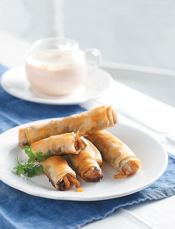 Αυτά τα νόστιμα πιτάκια θαλασσινών θα γίνουν οι μεγάλοι πρωταγωνιστές ενός πάρτι με μπουφέ και θα κλέψουν τις εντυπώσεις, ειδικά αν τα συνοδέψετε με αυτή την πικάντικη ροζ σάλτσα γιαουρτιού. Τα λέτε και εναλλακτικά spring rolls.