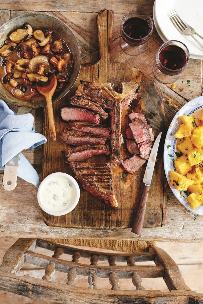 Τι πιο κλασικό από το να ψήσουμε μοσχαρίσιες μπριζόλες στη σχάρα; Εμείς επιλέγουμε τις κόντρα ή αλλιώς Τ-bone και τις συνοδεύουμε με μανιτάρια.