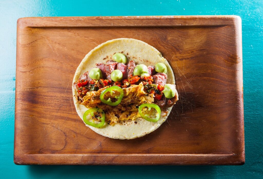 Τάκο με rib eye και χανιώτικη γραβιέρα σε σάλτσα αβοκάντο