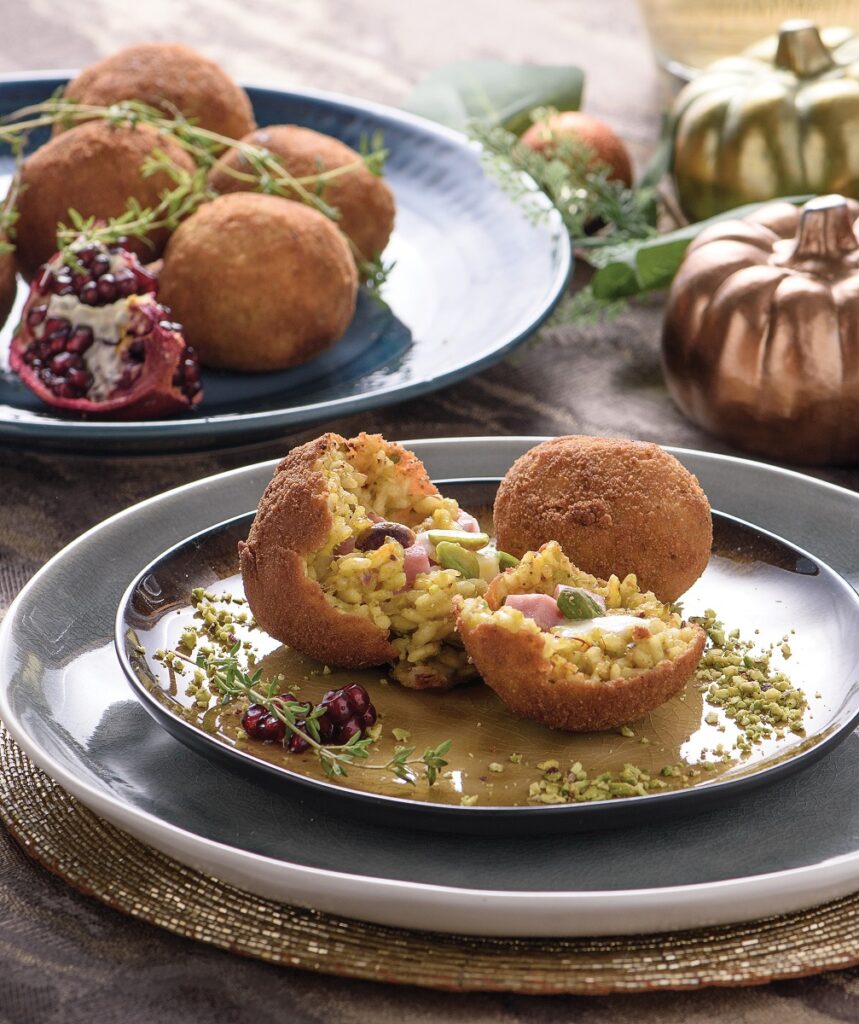 Τα arancini είναι ένα αγαπημένο ορεκτικό των Ιταλών γειτόνων μας από ρύζι. Εδώ με την προσθήκη μορταδέλας και φιστικιού γίνονται ακόμη πιο ξεχωριστά.