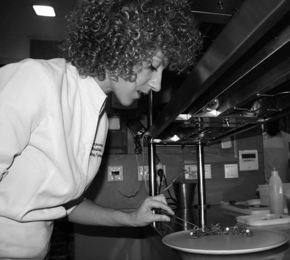 Η Γεωργιάννα Χιλιαδάκη, σεφ-συνιδιοκτήτρια του αθηναϊκού «Funky Gourmet» (2* Michelin), στήνοντας το δικό τους φινετσάτο «σπανακόρυζο».
