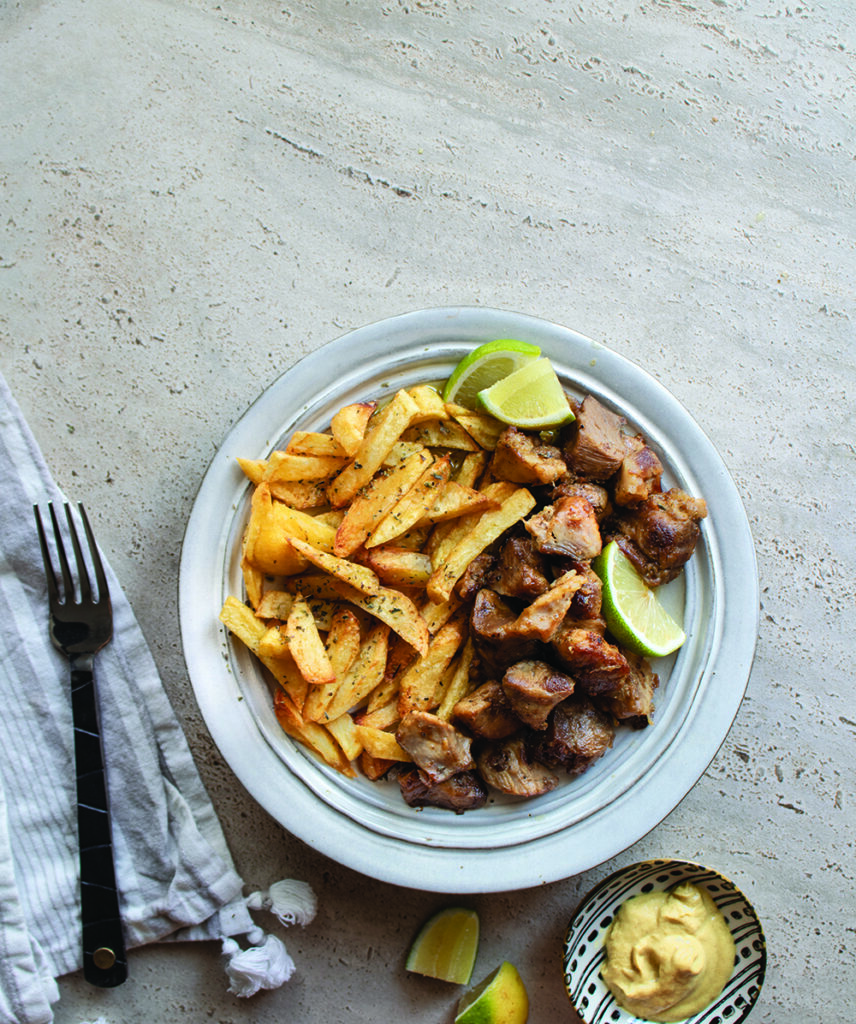 Χοιρινή τηγανιά με τηγανητές πατάτες