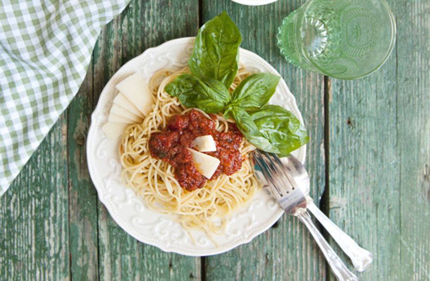 Σπαγγέτι με σάλτσα από σιγομαγειρεμένο κολοκύθι