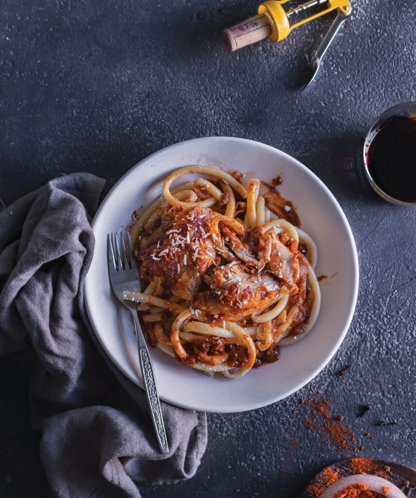 Κόκορας κρασάτος με χειροποίητα μακαρόνια