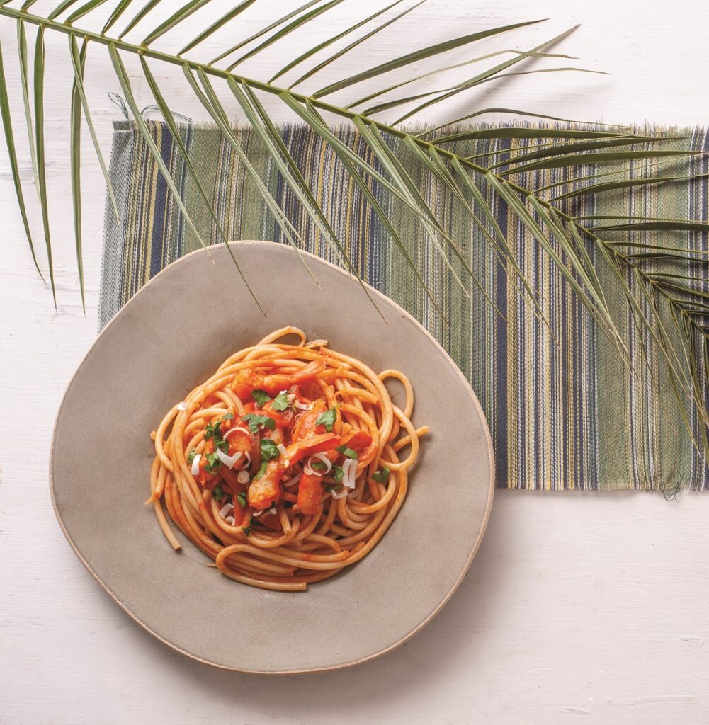 Σπαγγέτι με σάλτσα ψητής πιπεριάς Φλωρίνης και αμύγδαλα