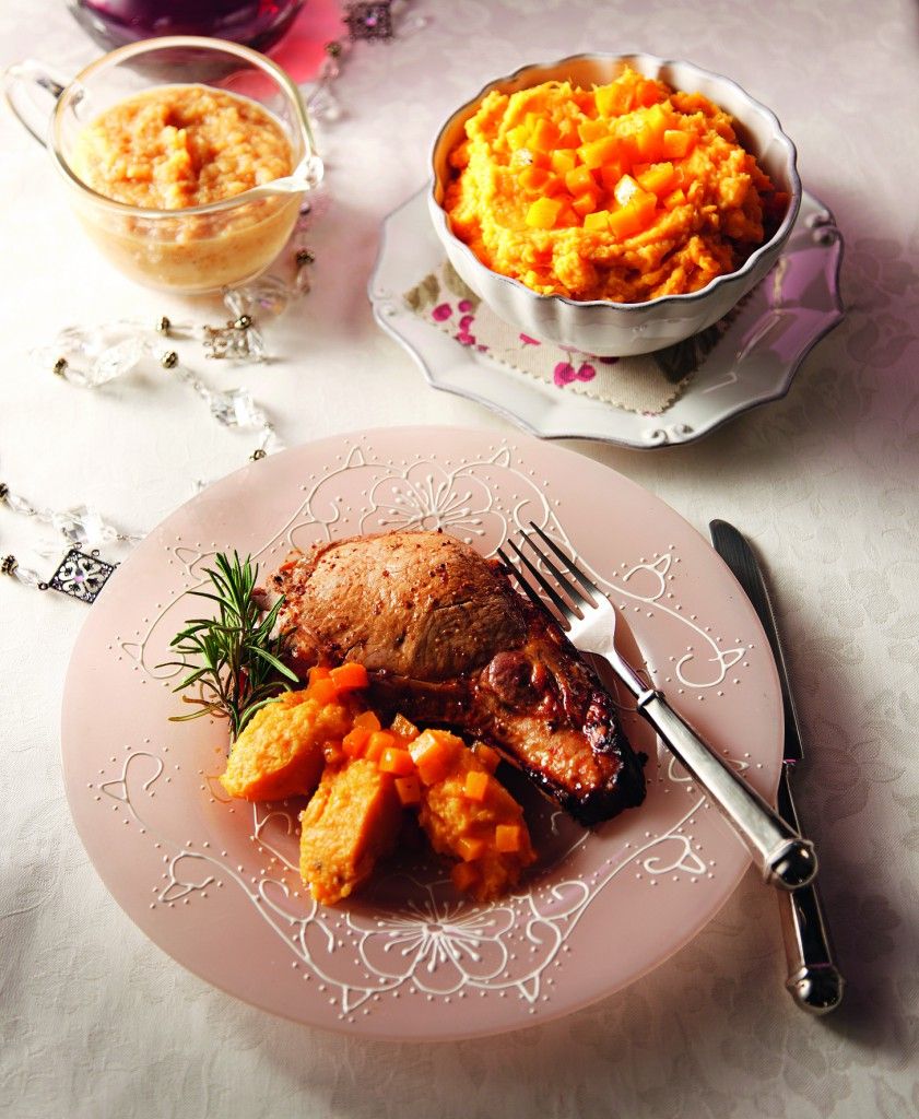 Χοιρινό μπριζολίκι με σάλτσα σύκου και πουρέ γλυκοπατάτας με κολοκύθα