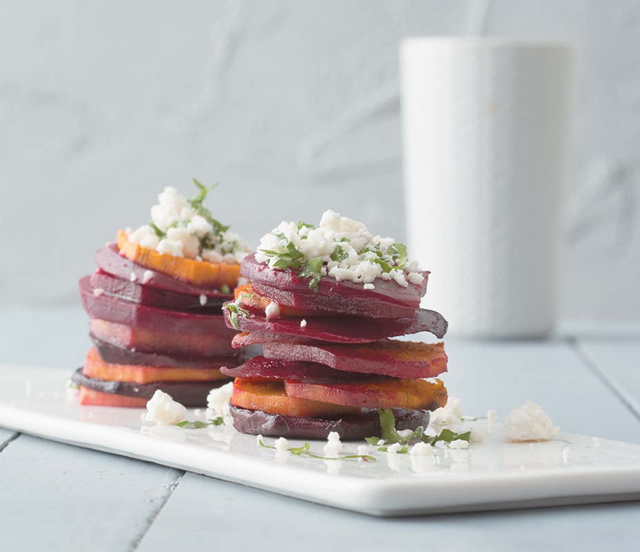 Μιλφέιγ παντζαριού – γλυκοπατάτας με κατσικίσιο τυρί