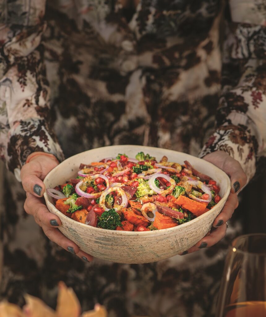 Σαλάτα με γλυκοπατάτες, ρόδι, ψητό μπρόκολο και νούμπουλο