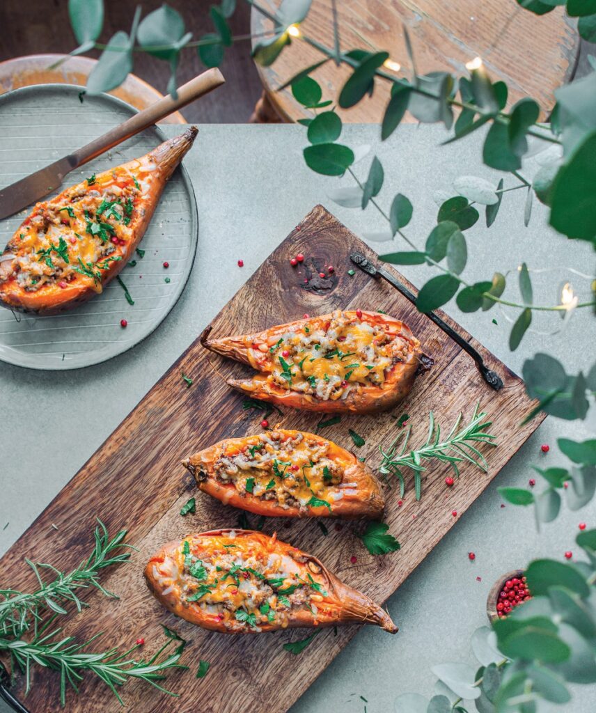 Ψητές γλυκοπατάτες γεμιστές με κιμά και μπαχαρικά