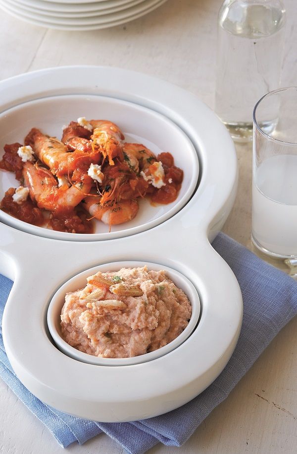 Αυτή η συνταγή δίνει έμφαση στη διατήρηση της σωστής υφής, τόσο της γαρίδας, που θέλει προσοχή στο μαγείρεμα, όσο και της φέτας, που δεν θέλουμε να διαλυθεί στο πιάτο.