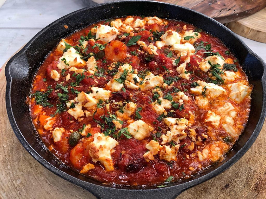 Γαρίδες σαγανάκι με φέτα και μυρωδικά