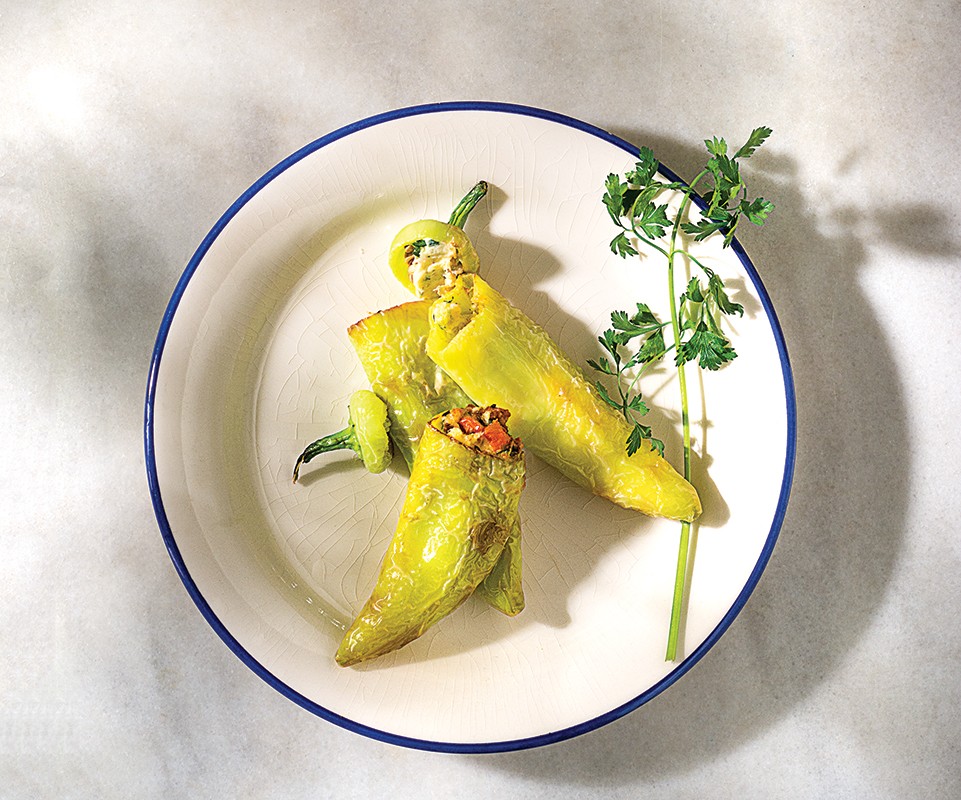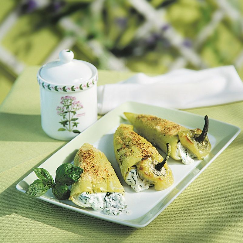 Ψητές πράσινες πιπεριές γεμιστές με αρωματικό κατίκι Δομοκού