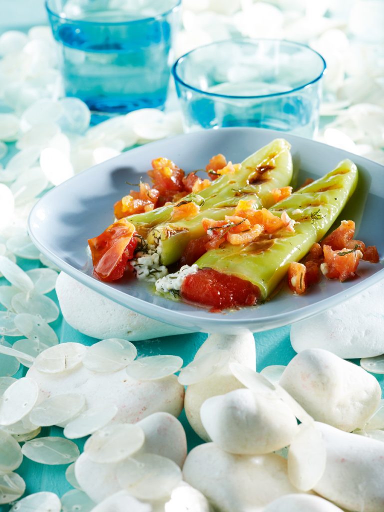 Πιπεριές κέρατο γεμιστές με φρέσκια ντομάτα και καπνιστό τυρί