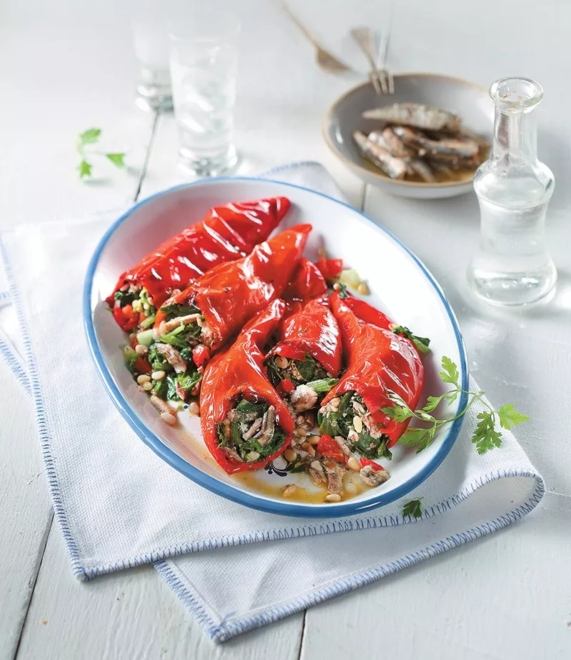 Οι γεμιστές πιπεριές είναι από τους καλύτερους μεζέδες για ούζο και τσίπουρο, ειδικά αν στη γέμιση τους προσθέσουμε και ψάρι όπως γαύρο λαδορίγανη.