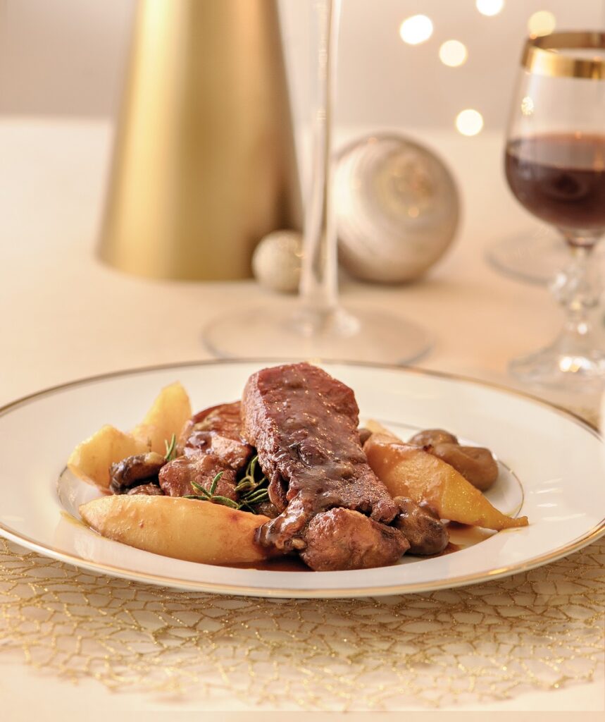 6. Χοιρινό στη γάστρα με πουρέ πατάτα – μήλο