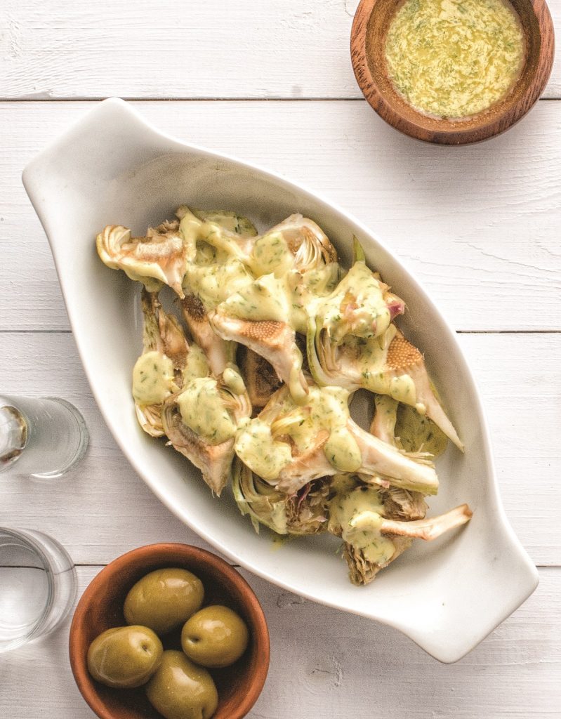 Καθαρίζουμε τις αγκινάρες. Δείτε αναλυτικά τα βήματα, εδώ.