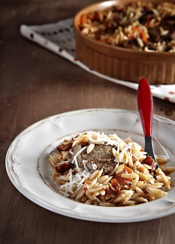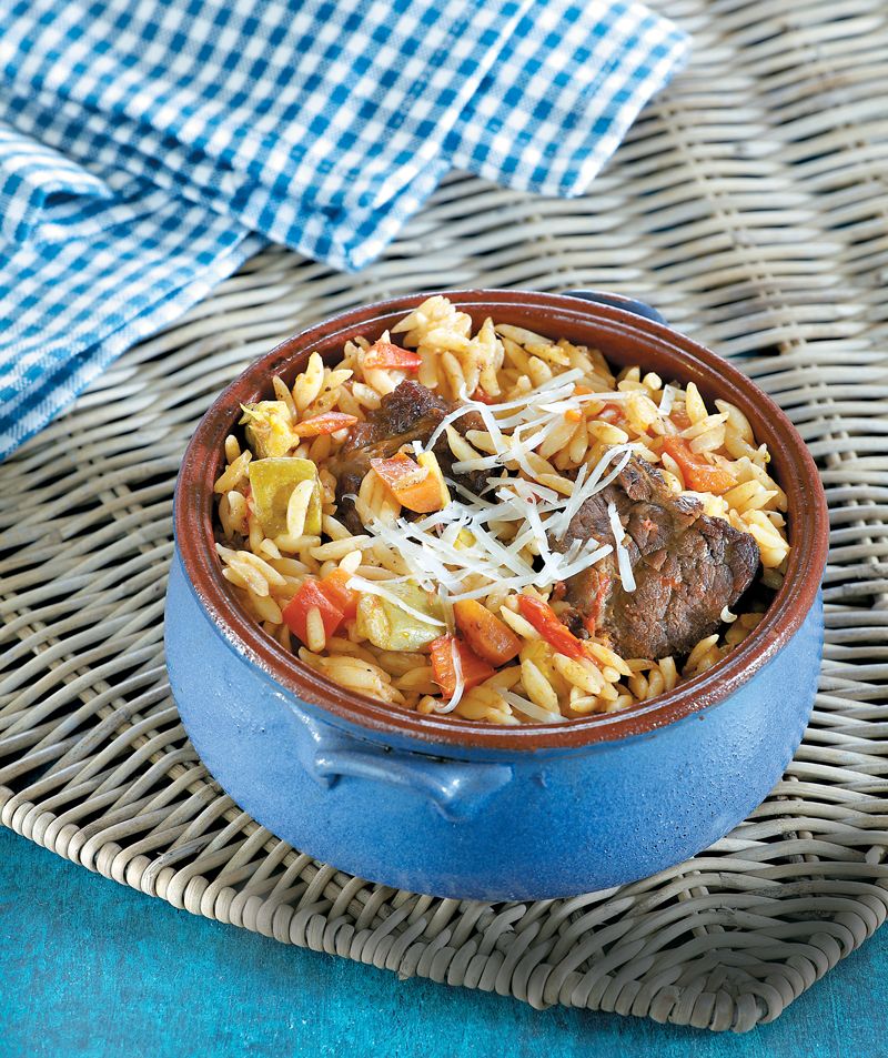 – Καλό είναι να φτιάξουμε αρκετή σάλτσα, ώστε αν χρειαστεί να προστεθεί στο ψήσιμο για να βράσει το κριθαράκι, αντί να προσθέσουμε νερό, όπως προτείνουν συνήθως οι συνταγές. Αν χρειαστούμε παρόλα αυτά επιπλέον νερό, θα πρέπει να είναι βραστό.