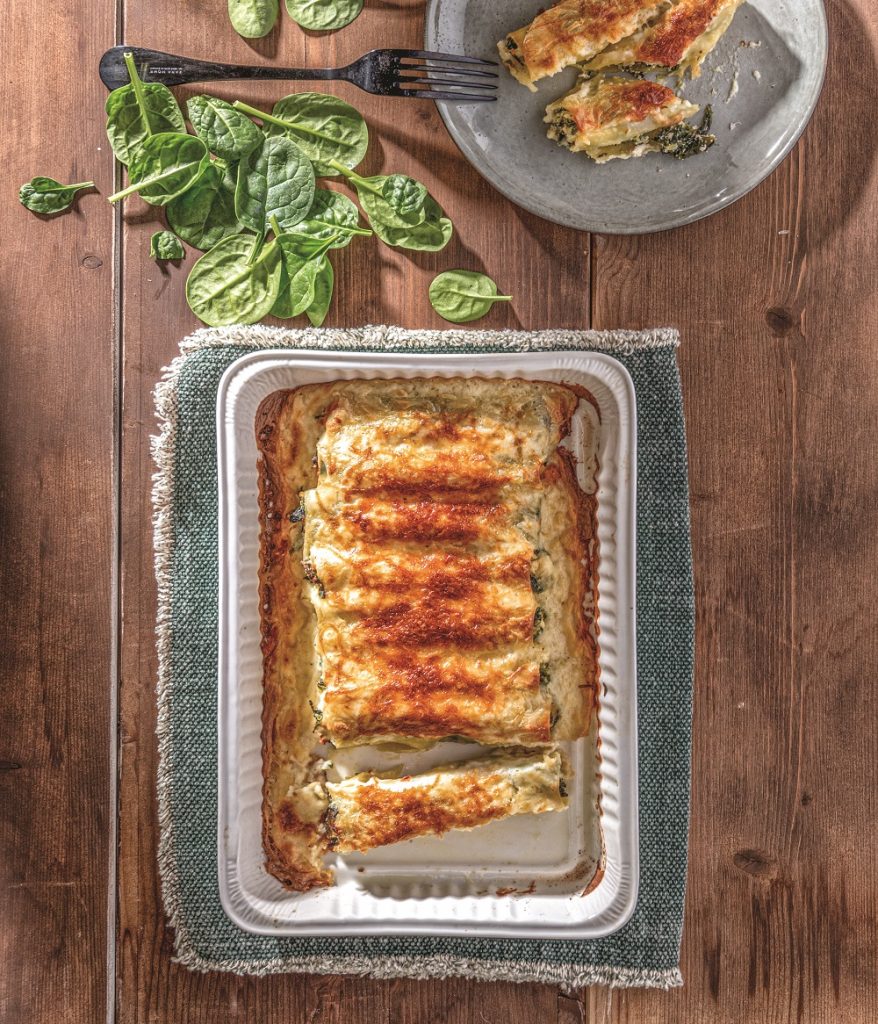 Κανελόνια με μανιτάρια, πράσα, σπανάκι και λαδοτύρι