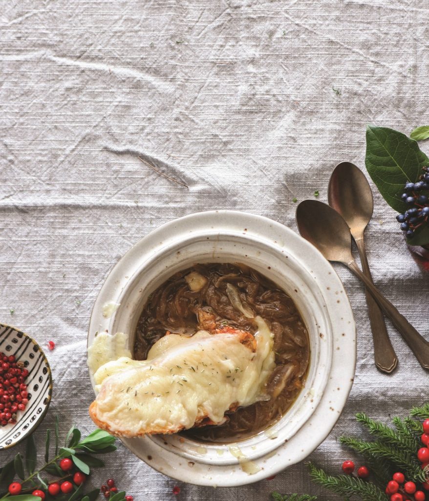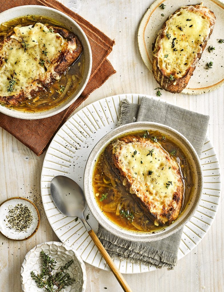Από τα πιο διάσημα πιάτα της γαλλικής κουζίνας, η κρεμμυδόσουπα είναι μία ιδανική επιλογή για το χειμωνιάτικο τραπέζι. Η Ελένη Ψυχούλη μας προτρέπει αν μην παραλείψουμε το ψημένο ψωμί με τη λιωμένη γραβιέρα από πάνω, καθώς ταιριάζει απόλυτα με τη σούπα και της προσθέτει γεύση.