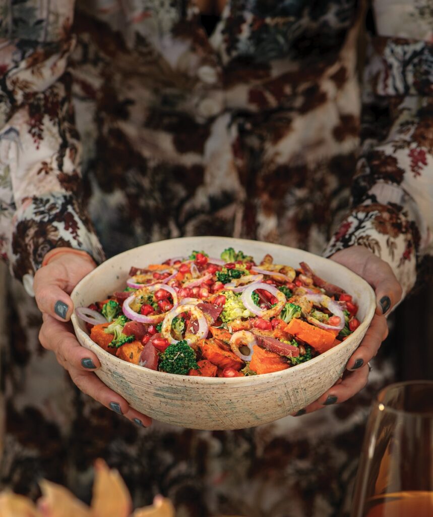 Σαλάτα με γλυκοπατάτες, ψητό μπρόκολο, ρόδι και νούμπουλο