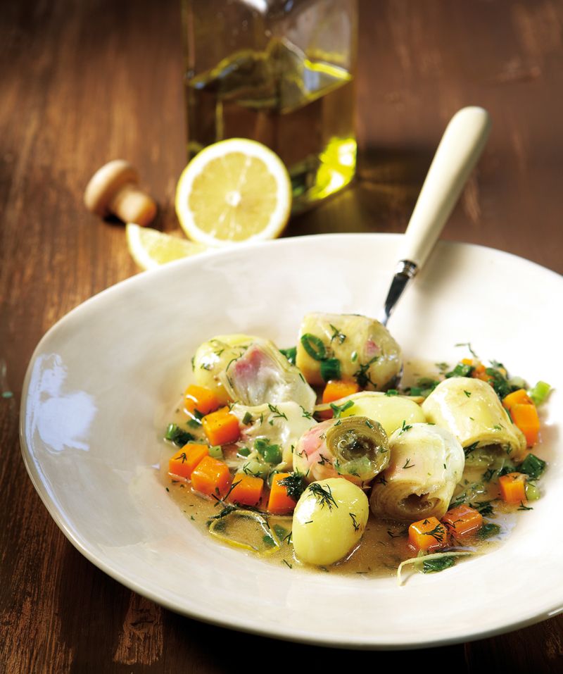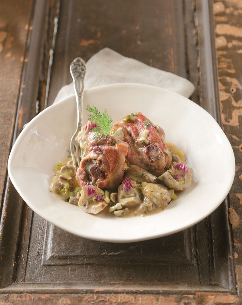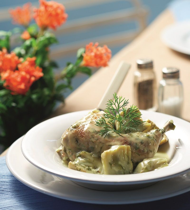 Ένα ανοιξιάτικο φρικασέ με κοτόπουλο και αγκινάρες, που θα σας κερδίσει με τη γεύση του.
