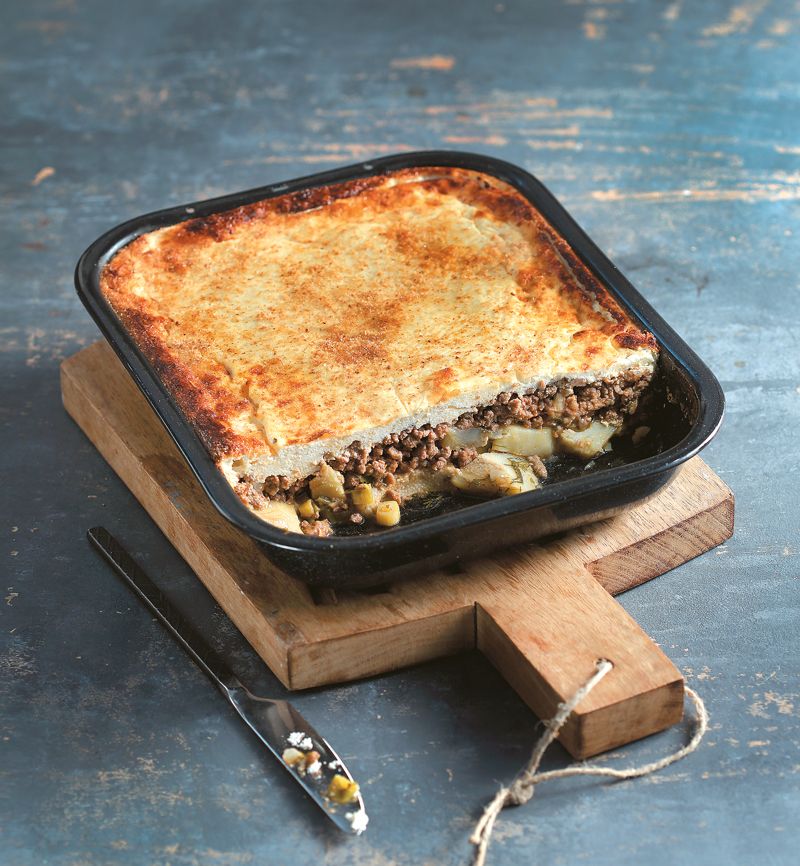 Μουσακάς με αγκινάρες και εύκολη μπεσαμέλ γιαουρτιού