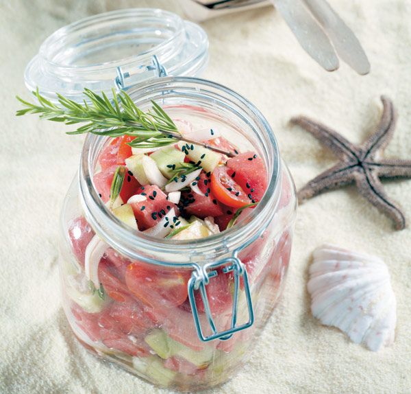 Το καρπούζι ταιριάζει μοναδικά με αλμυρές γεύσεις. Είναι άλλωστε γνωστός ο συνδυασμός με τη φέτα που αναμφίβολα έχει πολλούς -και φανατικούς- οπαδούς. Αλλά οι συνδυασμοί δεν σταματούν εδώ: με ντομάτα, γλιστρίδα, μανούρι, με πλιγούρι αλλά και με ελιές, κάππαρη και βασιλικό, το καρπούζι μπαίνει στις σαλάτες και τις εκτοξεύει γευστικά με την φρουτένια γλυκύτητά του.
